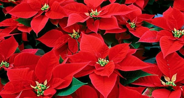 圣诞花的红色叶子实在太抢眼了,人们常会把它误当成是圣诞花的花瓣。其实在圣诞花的红色叶子中间,那黄色的部分才是真正的花,不过因为花太小,所以并不显眼。