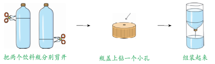 确定合适的滴水速度,用手表计时,在容器壁上贴上纸条,用笔在纸条上标出水流出(或接水)1分钟和5分钟时水的刻度。然后,依据水位来推算,分别标出1~10分钟的时间刻度。