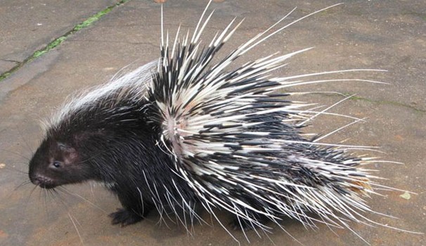 豪猪以背上和尾部尖锐如针的刺而闻名。原来,这些刺全是由毛进化而成的,是为了适应环境而改变的结果。刺的末端有倒向的钩子,因此刺入敌人的身体时,敌人越动刺得就会越深,有时还会将敌人刺死。