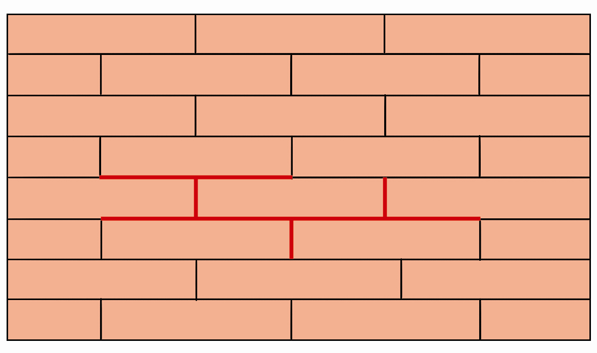 这是小熊家一面墙的一部分,可是少了一些砖,你用什么办法能知道到底缺了几块砖?两个半块的砖相当于一块哟! |
