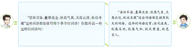 家长可以在辅导孩子时,给孩子讲一些与词语,尤其是成语相关的故事,来帮助孩子理解词语(成语)的由来及含义,这样便于孩子更好地理解成语的含义。如本课拓展的词语“一叶知秋”,家长就可以用这种方法让孩子理解。