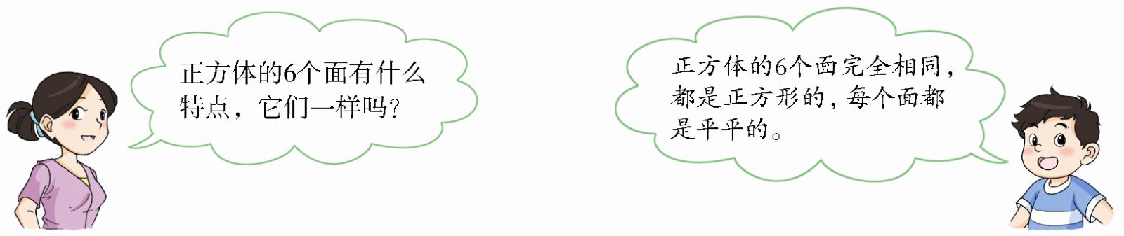 (1)说一说正方体6个面的特点。