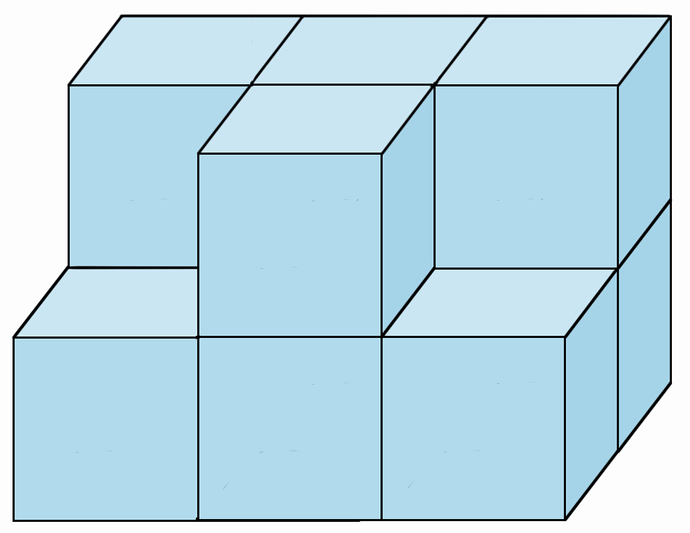 下面的一层有2+2=4(块)小正方体,上面的一层也有4块,一共用了4+4=8(块)。 |