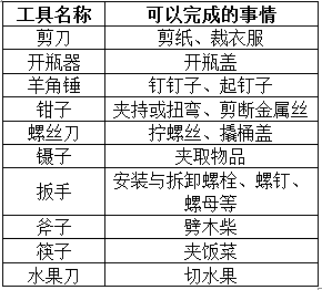 P2 把我们使用工具的“经验”填写在记录表中,统计一下同学们共用过多少种工具。