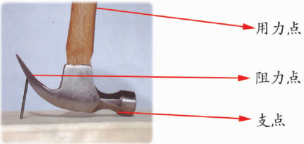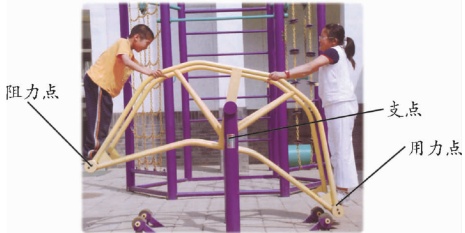 我们常玩的跷跷板也是杠杆的一种。跷跷板中央的转轴是支点,小女孩用力下压的一端是用力点,跷跷板翘起的一端是阻力点。