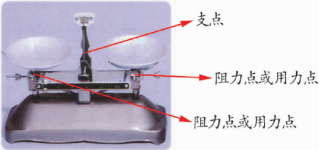 杆秤的支点是提绳与秤杆的连接点,阻力点是秤盘在秤杆上的悬挂点,用力点是秤砣在秤杆上的悬挂点。