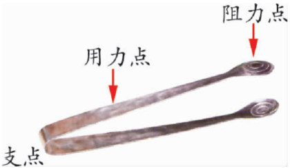 铁片的用力点和阻力点在支点的两侧,阻力点距支点更近;开瓶器的用力点和阻力点在支点的一侧,阻力点距支点更近;夹子的用力点和阻力点在支点的一侧,用力点距支点更近。