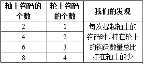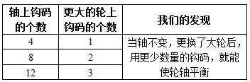 P11 把上面两种轮轴提起相同重物所用的力进行比较,从数据中我们发现了什么?把我们的发现记录在表格中。