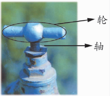 在我们的周围有很多地方应用了轮轴,如房门的把手、水龙头的把手、轱辘的摇杆、使用扳手装卸螺母、汽车的方向盘等。