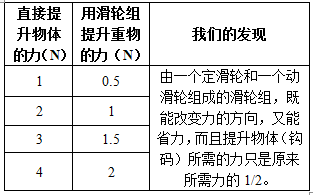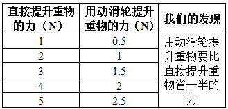 P13 组装一个动滑轮实验装置,用它提升重物。测量用了多大的力,记录并分析数据,看看动滑轮有什么作用。