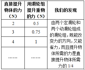 P15 我们用多个定滑轮和多个动滑轮组装一个滑轮组。这样的滑轮组作用会怎样?作出我们的推测,并用实验检验推测。