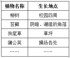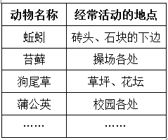 (4)将调查的校园生物分为动物和植物两类分别记录,既要记录生物的名称,又要记录它们生长和经常活动的地点。