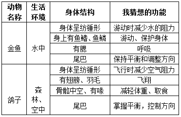 P82 分别写出金鱼和各自与它们的生活环境相适应的身体形态结构特征。这些特征对它们有什么意义呢?