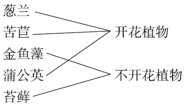 (1)C 解析:本题考查不开花植物的特点。蕨菜属于不开花植物。