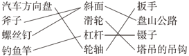 解析:本题考查简单机械的实际应用。汽车方向盘和扳手利用了轮轴原理,斧子、螺丝钉、盘山公路主要应用的是斜面原理,钓鱼竿、镊子主要应用的是杠杆原理(不考虑带轮轴的钓鱼竿),塔吊的吊钩应用的是滑轮原理。