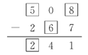。观察第2道题,这道题很容易就可以填出个位上的□内的数字,因为只有8-7=1,所以个位上的□内应填8;十位上0减任何数都不够减,必须从百位退1,把十位上的0看作10,10减一个数等于4,由此可以算出□内应填6;被减数百位退1后减2,差的百位上还有数字,而差的百位上的数字最小是1,所以被减数百位上的数字最小就是4,被减数百位上的数字可能是4,5,6,7,8,9,而差的百位上的数字可能是1,2,3,4,5,6。因此,第2道题答案不唯一。