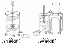解析:泄水型水钟,容器内的水面随水的流出而下降,根据水面的变化就可以测出过去了多少时间。受水型水钟,水滴以固定的速度滴入圆筒,使得浮标随水量的增加而逐渐上升,从而显示时间。