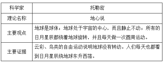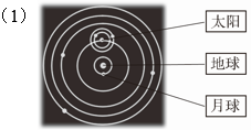 (2)“地心说”认为地球不动,太阳围绕地球转,地球处于宇宙的中心;“日心说”认为地球在自转,并且围绕太阳转动,太阳处于宇宙的中心。
