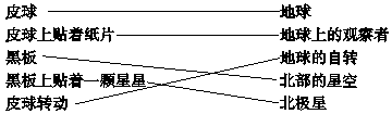 (5)× 解析:地球是围绕一个假想的轴在转动,称作地轴。北极星就处在地轴的延长线上。地球转动时,地轴始终倾斜着指向北极星,这就是北极星“不动”的秘密。