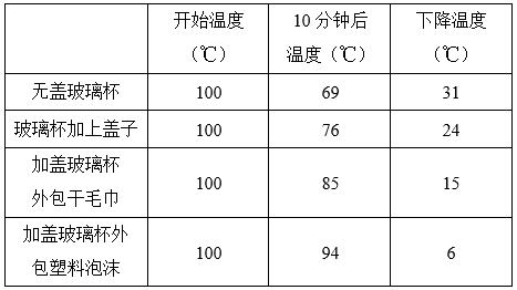 解析:不同材料的保温性能不同。在这个实验中,加盖玻璃杯外包泡沫塑料保温性能最好,因为同样起始温度的水在10分钟过后水温降低速度最慢。