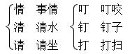 1.从 众 众 条 变成 2.林 森 单丝 不成 3.晴 清 蜻 睛