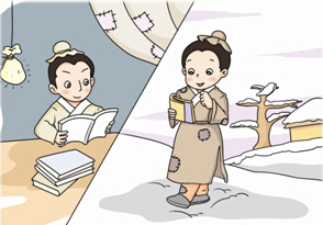 晋代时的另一位名人叫孙康,他小时候家境也很贫穷,由于没钱买灯油,晚上不能看书,只能早早睡觉。他觉得让时间这样白白跑掉,非常可惜。一天半夜,孙康从睡梦中醒来,把头侧向窗户时,发现窗缝(fèng)里透进一丝光亮。原来,那是大雪映出来的。孙康想:“可以利用它来看书。”于是他倦(juàn)意顿失,立即穿好衣服,取出书籍(jí),来到屋外。宽阔的大地上映出的雪光,比屋里要亮多了。孙康不顾寒冷,立即看起书来,手脚冻僵(jiāng)了,就起身跑一跑,同时搓搓(cuō cuō)手指。此后,每逢有雪的晚上,他就不放过这个好机会,孜孜(zī zī)不倦地读书。这种苦学的精神,促使他的学识突飞猛进,成为饱学之士。后来,他当了一个大官。