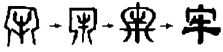 让孩子观察“牢”的字形演变图,说说“牢”的本义,再说说“牢记”中的“牢”是什么意思。
