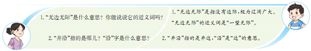 指导“无边无际”时,家长可以让孩子联想大海或草原没有边际的样子,让孩子通过联想理解词语的含义;也可以先让孩子查字典或词典,理解“无…无…”式短语所表达的含义,然后再理解“无边无际”的含义。