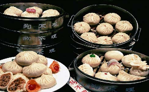 当时,在天津郊悬有一户农家,四十岁喜得贵子,为求平安取名叫“狗子”。狗子长到十四岁时,来到天津学手艺,在一家蒸食铺做小伙计,由于狗子心灵手巧,勤奋好学,练就了一手好活儿。其后,狗子不甘心寄人篱下,便自己摆起了包子摊儿。他发明了水馅,、半发面的工艺,做出的包子口感柔软、鲜香不腻,包子外表如同一朵绽放的白菊花,色、香、味、形独具特色,吸引了十里百里的人们都前来吃包子,生意十分兴隆,狗子忙生意顾不上说话,人们都说:“狗子卖包子不理人”,就这样天长日久,人们就叫他狗不理了。