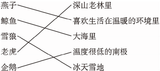 (1)× 解析:青蛙和蛇在冬天都会冬眠,不会因为冬天的到来而死去。(2)√ 解析:在不同的环境里,生活着不同的生物,鱼生活在水里,企鹅生活在南极。考查的是不同环境里生活着不同的生物。(3)√ 解析:变温动物又称冷血动物,这些动物的体内没有自身调节体温的机制,冬天,它们中的一些或是移向日光下取暖来提高体温,或是钻进地下、洞穴中进行冬眠,来适应严寒、食物缺乏等不良环境。(4)√ 解析:天鹅是候鸟,由于季节不同而变更生活场所,它们冬季在南方过冬。(5)√ 解析:骆驼之所以能在沙漠里生存是因为适应环境而进化的结果,骆驼的驼峰里能存储水分和能量,所以骆驼能适应沙漠缺少食物和水的生活。
