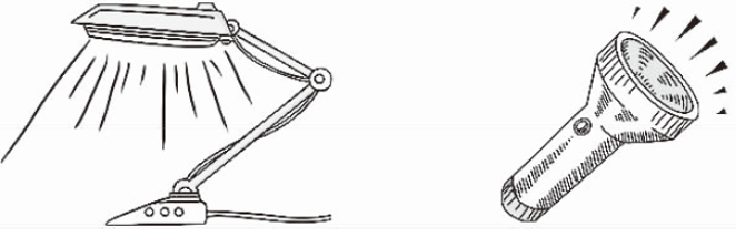 (2)路灯照亮下方的路面,激光笔发出的光束,乌云边缘的光线等。