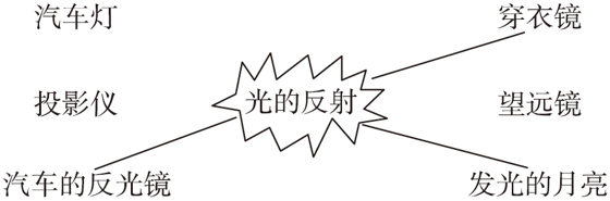 (4)√ 解析:本题考查光的反射的定义,即光碰到镜面改变传播方向,被反射回去,形成反射现象。
