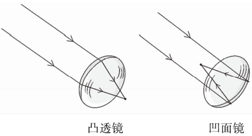 解析:画光线路线图时,注意光线的会聚,凸透镜的光线会聚在镜片的另一侧,凹面镜的光线会聚在镜面的同一侧(不透光)。