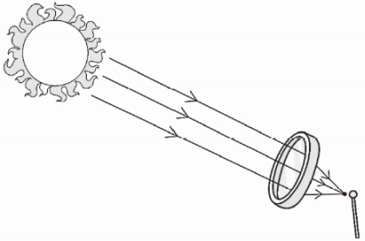 综合解析:本题考查凸透镜的会聚作用。画图时,要注意会聚的点要集中在火柴头上,这样升温快。凸透镜能够把光线会聚在火柴头上,使火柴头迅速升温,最后燃烧。
