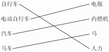 解析:本题考查各种车运动所用的动力。自行车依靠人力,电动自行车依靠电瓶的动力,汽车依靠内燃机的动力,马车依靠马的拉力。