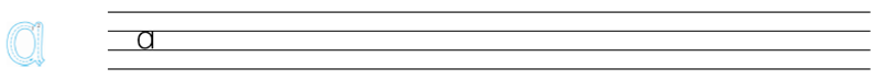 汉语拼音四线格分为上、中、下格,ɑ占中格,由两笔写成。先写左半圆,再写竖右弯。半圆的起笔点和落笔点对齐,竖写直,弯写短,做到浑圆饱满。