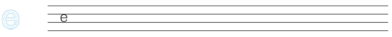 e占中格,一笔写成。在中格一半处起笔向右横写,向上折画圆弧过起笔处。对准折笔处留一个小口停笔。