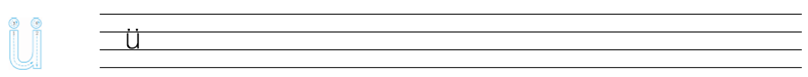 书写ü时,u占中格,上面两点占上格。ü带调时,两点不要丢掉。