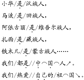 解析 课文虽短,但不太好读,尤其是少数民族的名称及少数民族人的名字,有些还是多音字,一定要读准字音。根据句式特点,正确断句,在读准确的情况下,把课文读流利,读出语感。