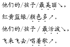 解析 这是一首儿童诗,用拟人的手法描绘了鸟与树的密切关系。要用抒情的语调、快乐的语气来读,体现出鸟与树的快活。但每句话的朗读基调要略有区别,如,第一句,要抓住“乐呵呵”这一词语,用轻柔、快乐的语气来读;第二、三句话,要抓住“最美丽”“最活泼”这两个词语,用骄傲、喜悦的语气来读。