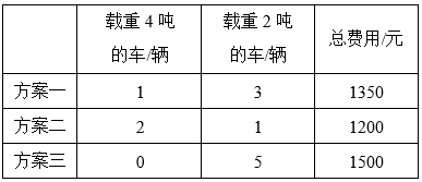 解答:用2辆载重4吨的车和1辆载重2吨的车运最省钱。