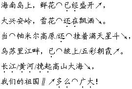朗读符号说明 /表示时间停顿较短;∥表示时间停顿略长;⌒表示语气延长;~表示颤音;△表示末尾一字是韵脚;·表示重音;↗↘分别表示声调微升和声调略降,突出抑扬顿挫感。