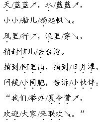 解析 本文是一首简短的儿童诗,以大陆小朋友同台湾小朋友对话的口气,表达了大陆小朋友和台湾小朋友盼望祖国早日统一的共同心愿。诗歌韵律整齐,节奏感强,朗读时,要注意读出诗歌的节奏和韵律,把握好重音和停顿,尤其要读好轻声,如“扬起”“风里”“浪里”“告诉”等词语。
