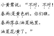 解析 这是一篇童话故事,朗读时,要体现小鸟们的天真、活泼、可爱,春雨的轻柔、欢快,大自然的美丽、神奇。小鸟们的语言要读得活泼些,“不对”和它后面的半句要读出争论的语气,“你们瞧”要读得急切些。前后两个自然段用轻柔的语气读。