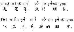 解析 本题出示的都是由会认字组成的词语,反复诵读有利于识记字音、理解字义。本题出示的两句话是并列关系的句子,重音放在判断词“是”“也是”上,表示强调。