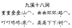 解析 《九溪十八涧》运用了重言的方法,韵律感强,读起来朗朗上口。前两句诗要读得舒缓一些,表现出环境的幽静;后两句要用欢快的语调读,声音轻快、响亮,读出泉水叮咚作响的感觉。《“一”字诗》向我们展现了一幅江水垂钓晚景图,画面清新自然。朗读时,要读得轻柔一些,表现出生活的恬静,同时要注意“一”的变调。