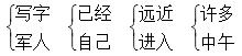 1.我替小鸟给妈妈写信。 2.蜜蜂在花丛中采蜜。 3.这是送给妈妈的礼物。