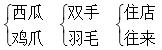 1.(1)火红 (2)可爱 2.(1)我和妈妈都喜欢吃香蕉。 (2)我一边唱歌,一边跳舞。 3.(1)猴子们正在捞井底的月亮。 (2)勇敢的哨兵守卫着祖国的边境。